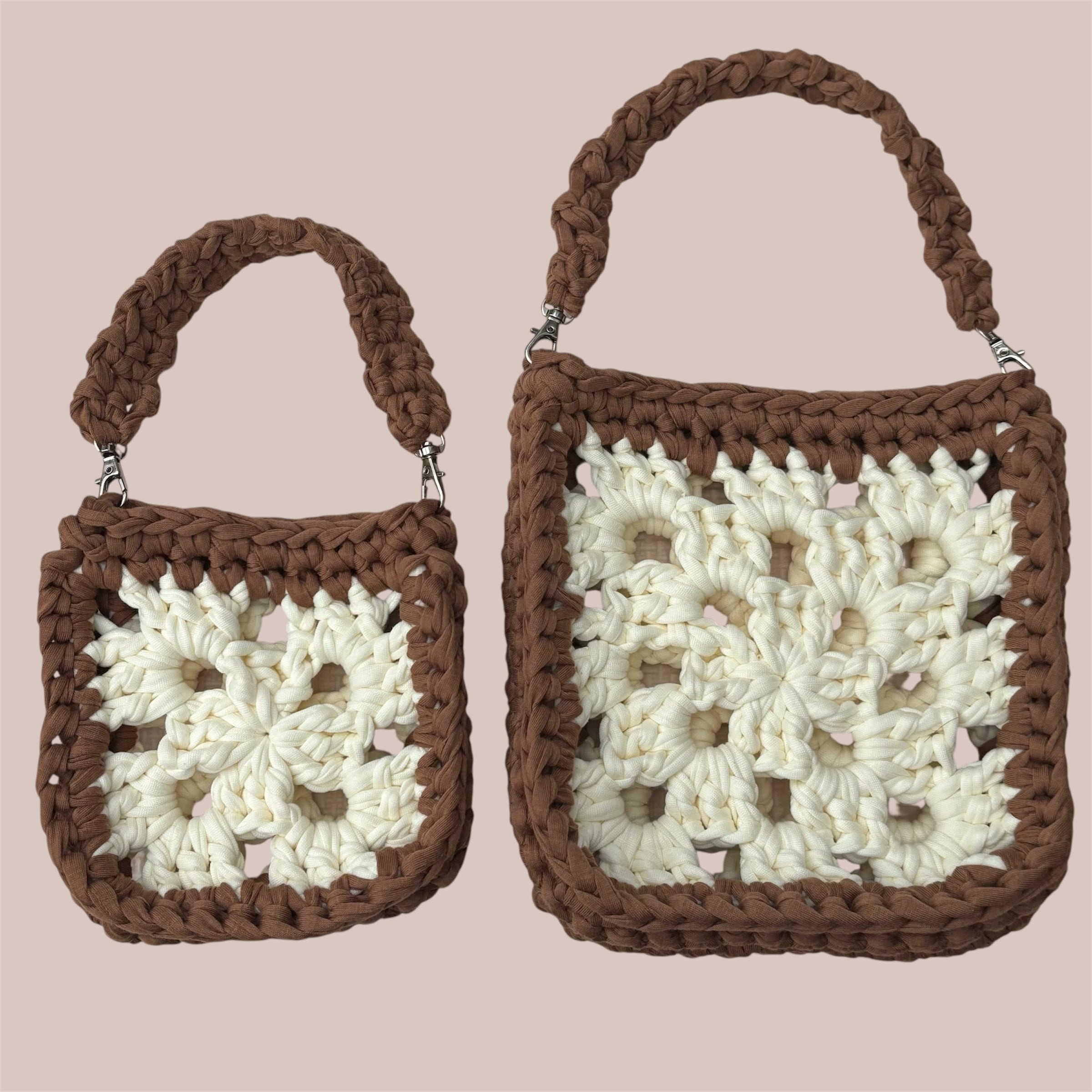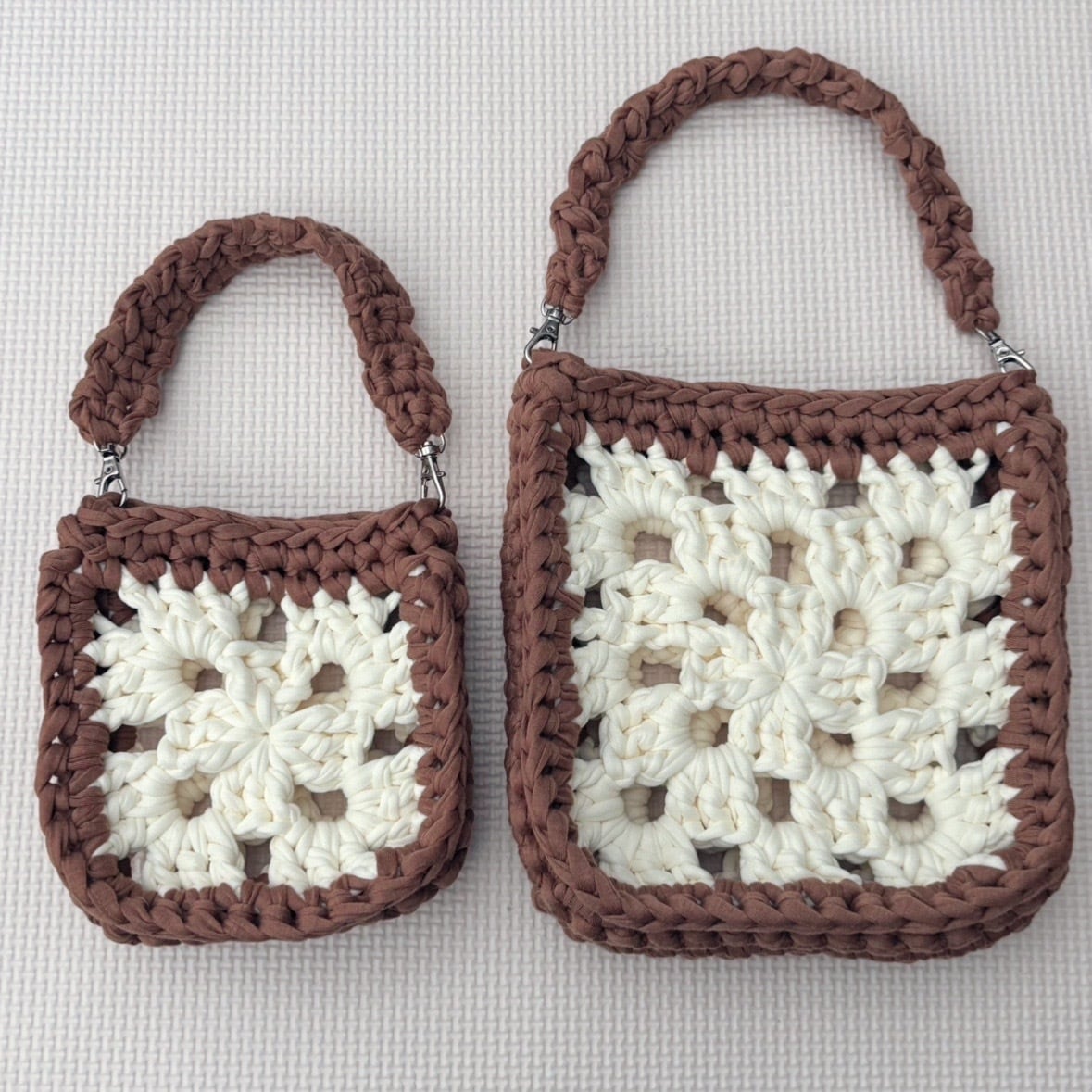 こんがり焼きあがった食パンをイメージして、ひと目ひと目心をこめて編んだミニサイズのバッグです
