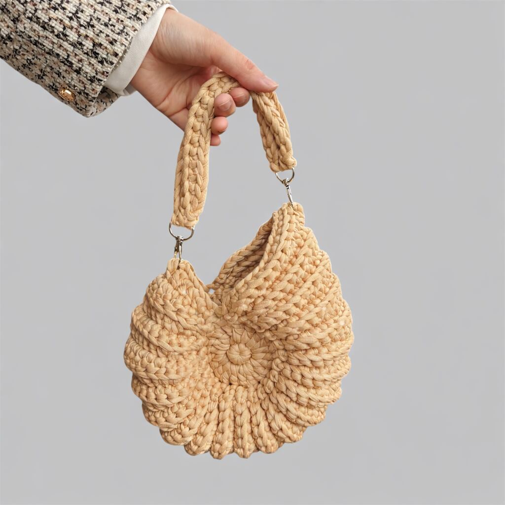 アンモナイトモチーフのバッグです。