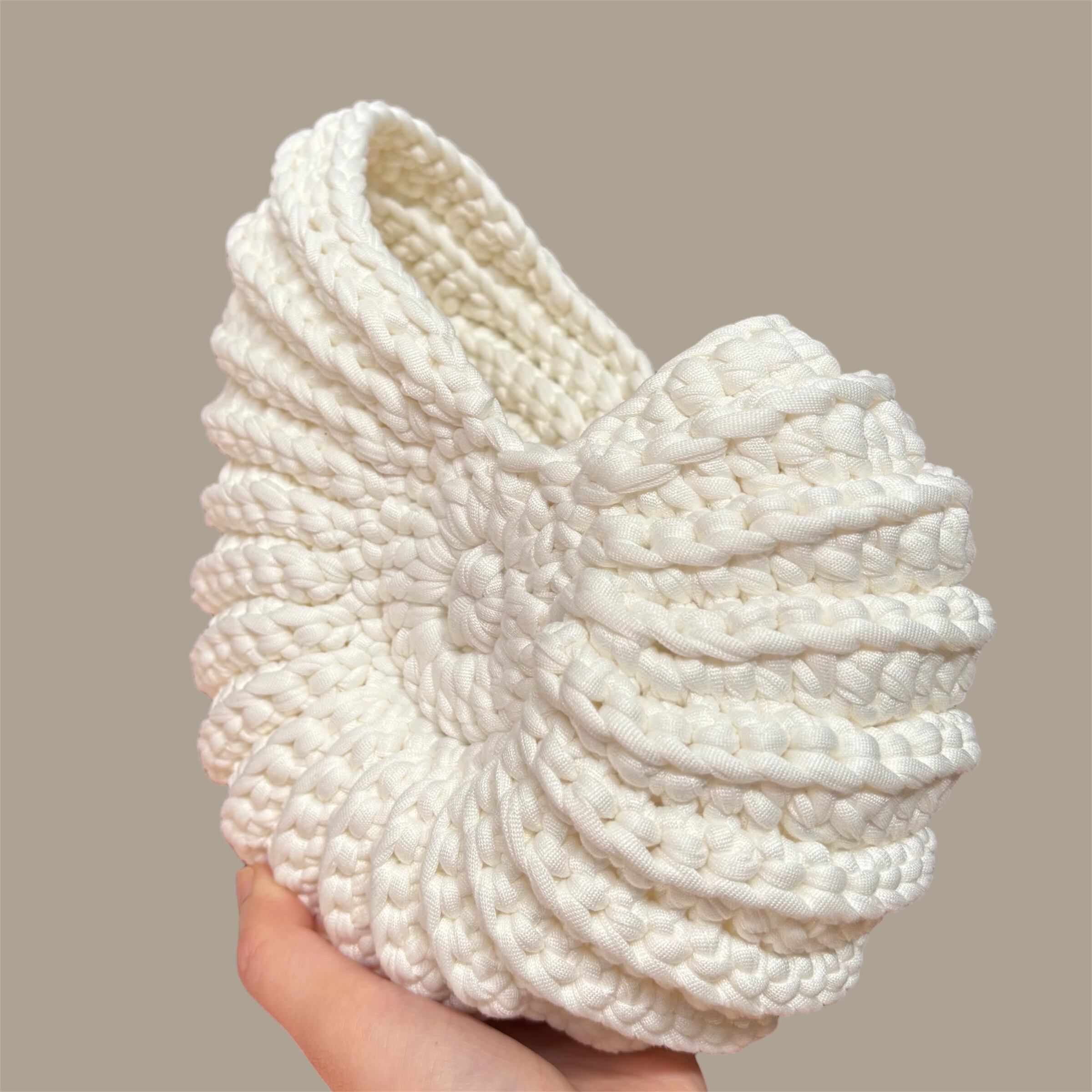 しっかりとしたTシャツヤーンで編んでいるので、