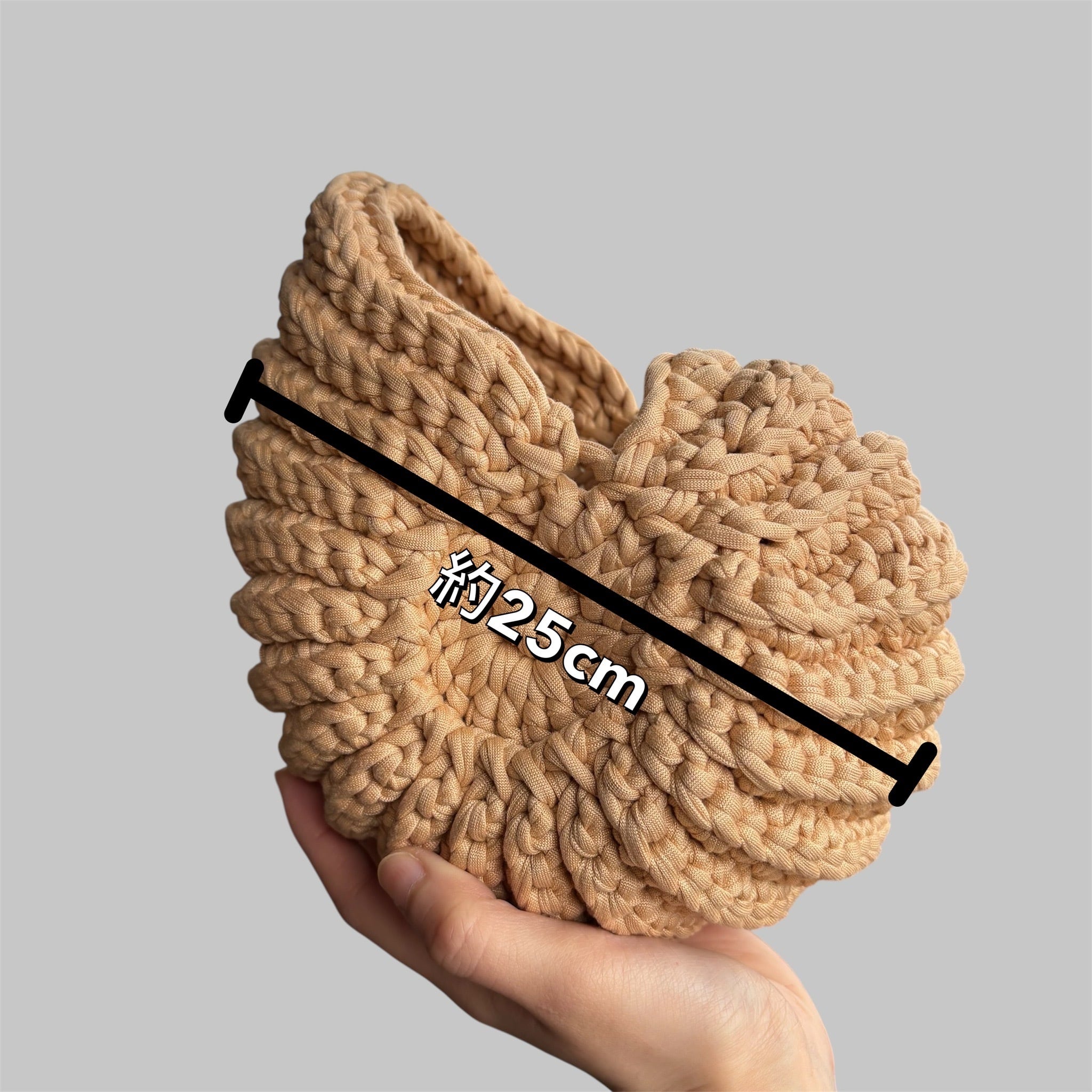 しっかりとしたTシャツヤーンで編んでいるので、
